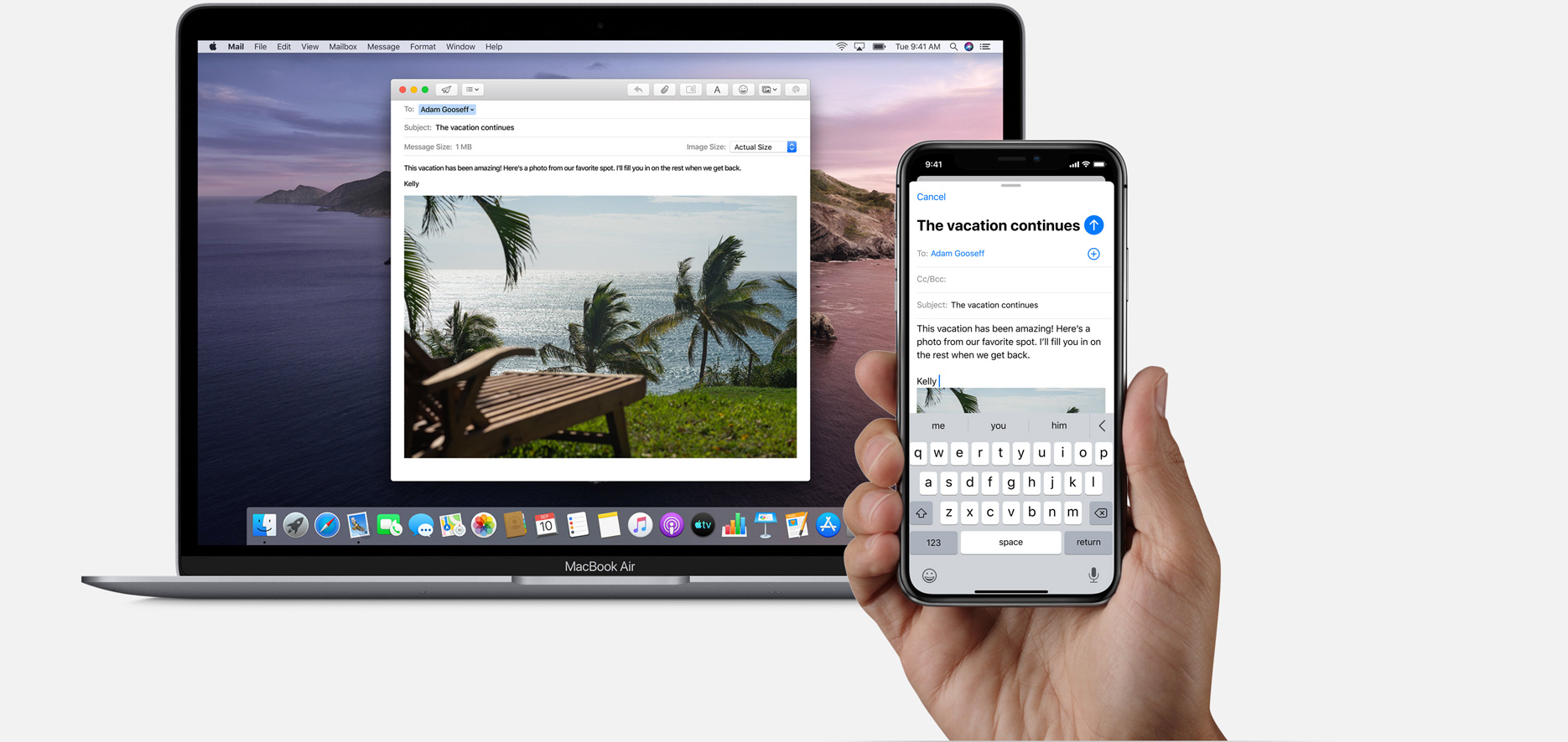 Con “Continuity” si può collegare il Mac, l'iPhone, l'iPad e l'Apple Watch attraverso un’esperienza utente unica. Quando si accede ad unico ID Apple su tutti i dispositivi in possesso, è possibile usare le funzionalità di Continuity che rendono facile il passaggio da un dispositivo all'altro.